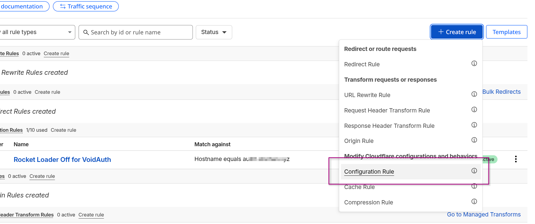 Domain > Rules > Overview > Create Rule > Configuration Rule