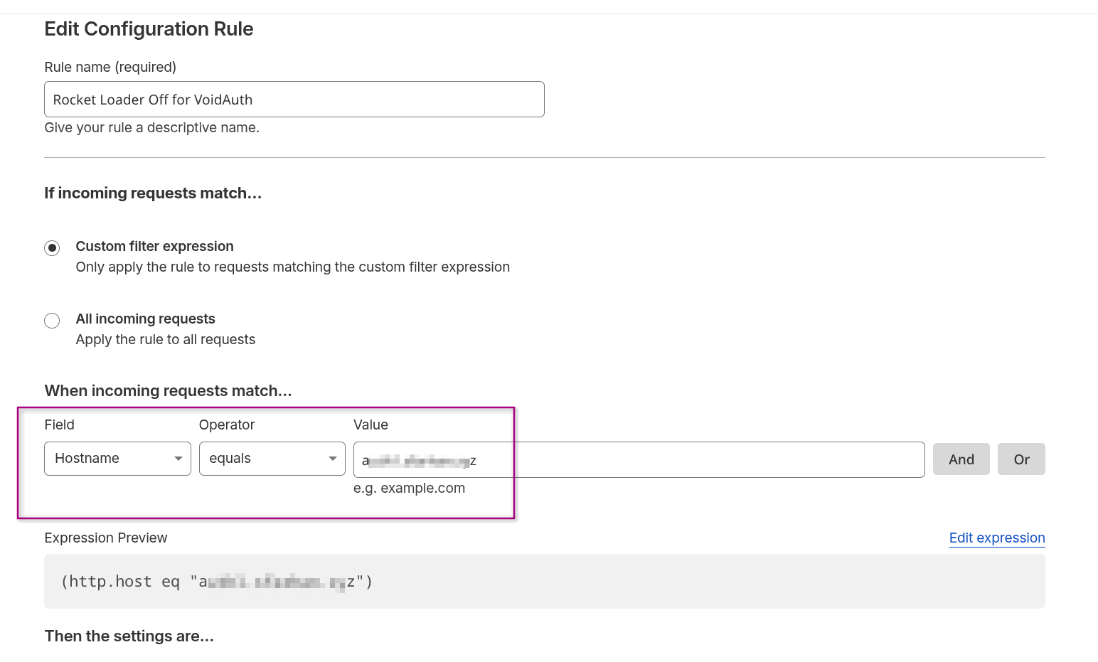 Enter Hostname of the Voidauth's instance subdomain Equals to the URL.