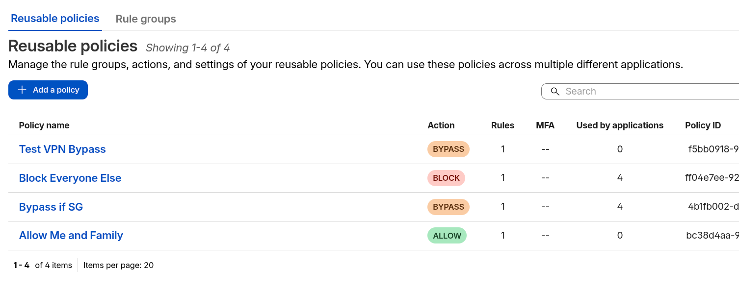 Account/Home > Zero Trust > Access Control > Policies/Applications
