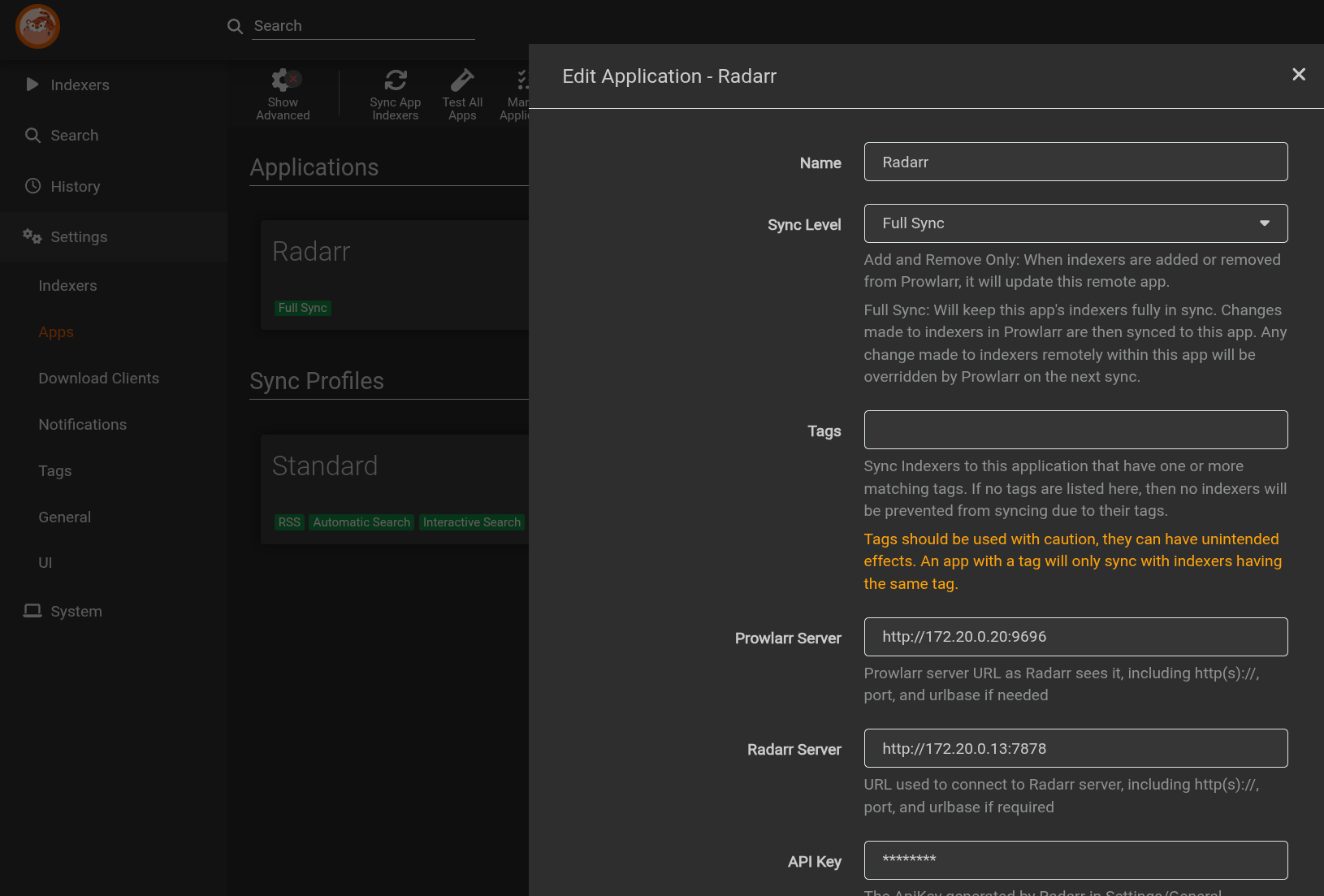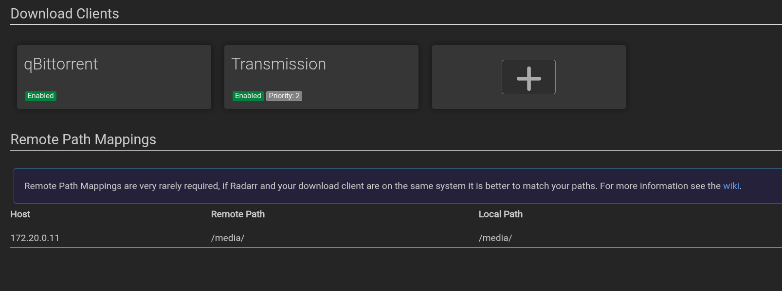 http://172.20.0.20:9696- (This tells Radarr how to call back to Prowlarr).