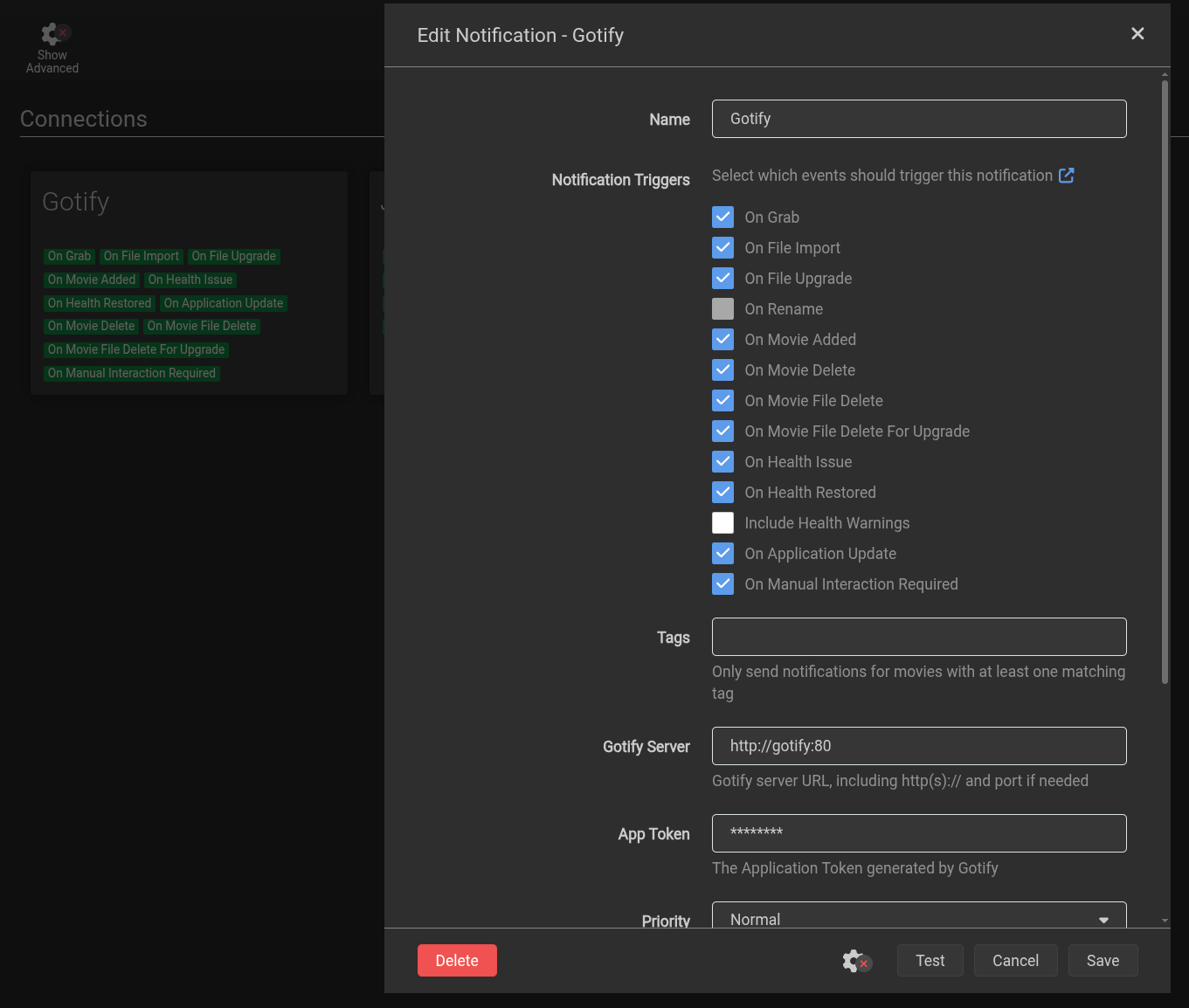 - Go to Settings -> Apps -> Click (+) -> Select Radarr.