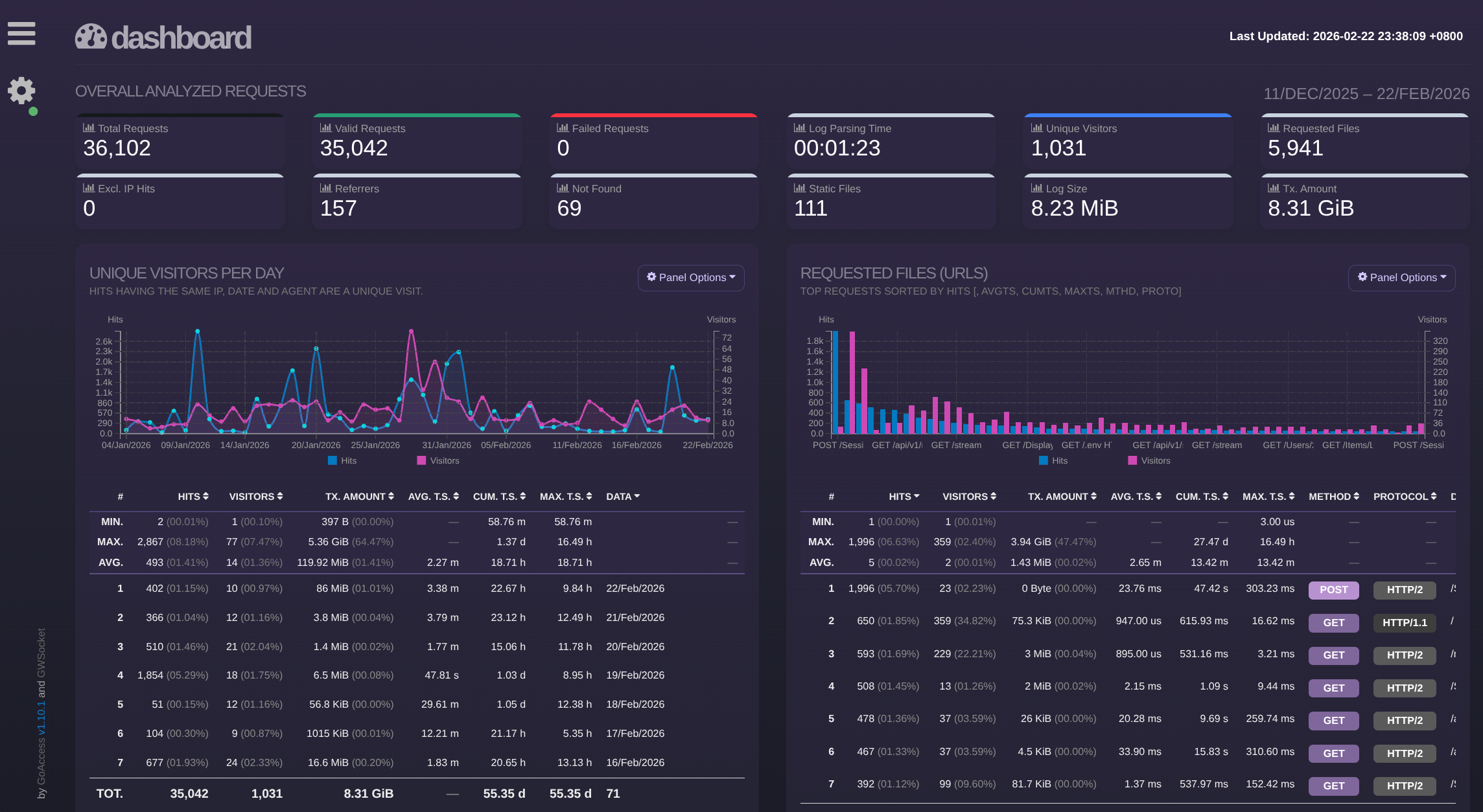 GoAccess is a real-time web log analyzer that provides a visual dashboard for the Caddy reverse proxy. This specific configuration operates strictly in LAN-Only mode.