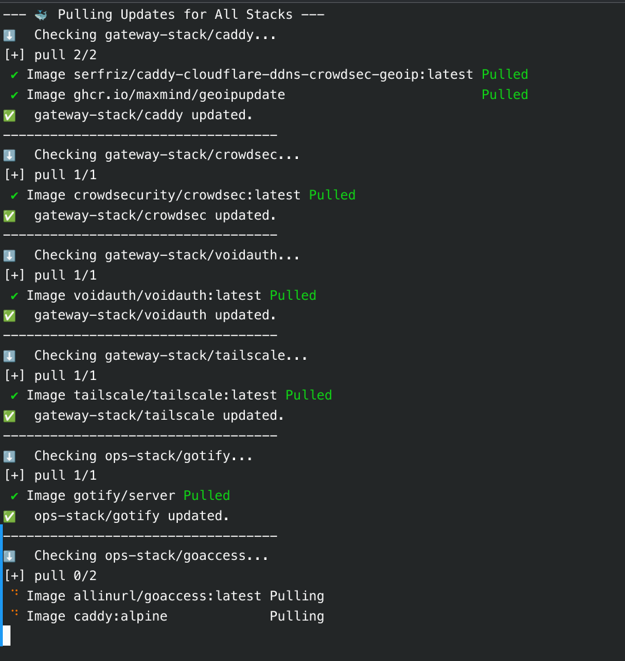 This utility script automates the process of fetching the latest Docker images for every service running in our homelab. Instead of manually navigating into each service folder to run docker compose pull, this script iterates through the directories and does it for us.